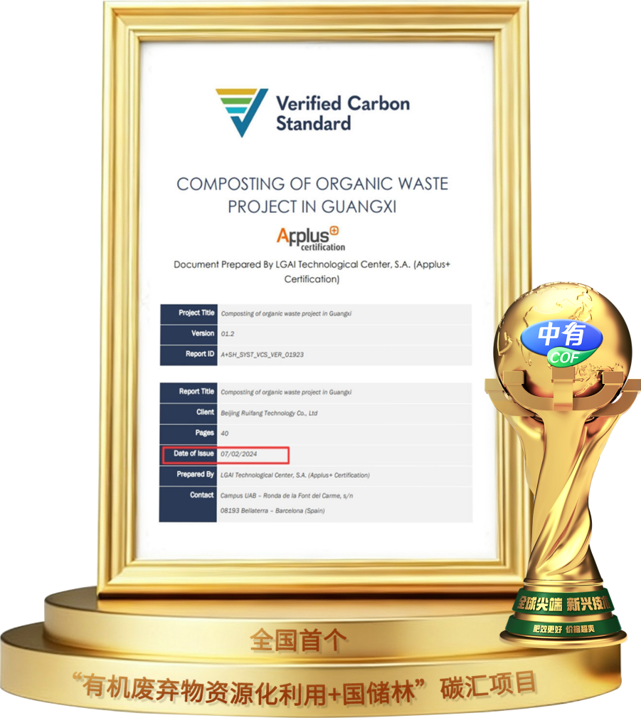 2022年7月,以自主投资运营的田东、宜州两大有机固废资源化利用项目为支撑,在VCS平台(国际核证碳减排标准)成功注册国内首个“有机废弃物肥料资源化利用+国储林”碳汇项目,年均碳减排量88万吨。