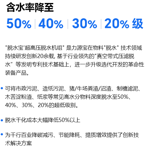 可将高水分物料直接深度脱水至水分50%、40%、30%、20%超低级别