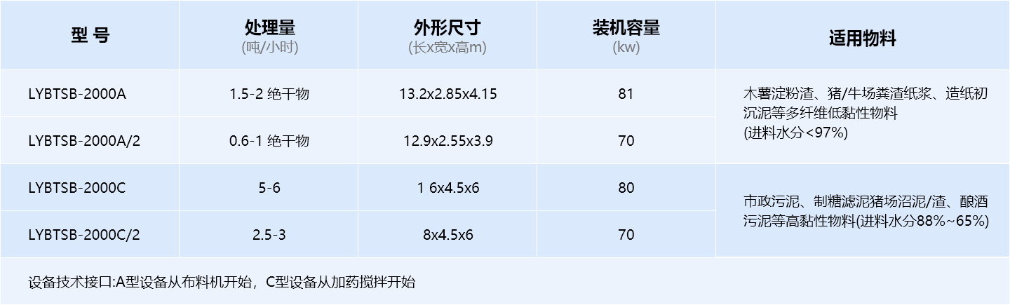 设备参数(设备技术接口:A型设备从布料机开始,C型设备从加药搅拌开始)